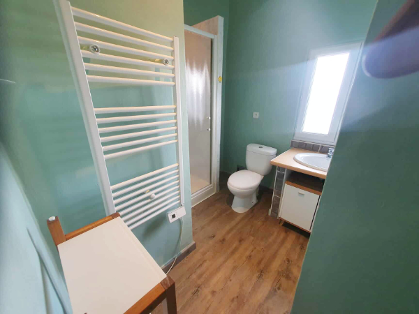 Elle est équipée d’un Lit 160x200 et salle d ‘eau et WC privé NON attenante à la chambre (La salle de bain se situe au bout du couloir).